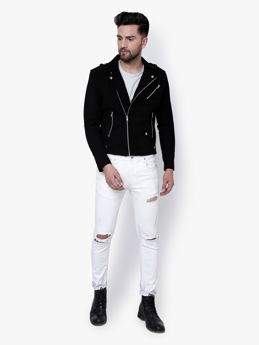 Few items of menswear come packaged with as much attitude, heritage, or unfiltered masculinity as a leather jacket. Our Solid Black Men’s Biker Suede Leather Jacket Men’s Solid Leather Jacket exclusive finger bridges make the snap closures a breeze, Through your busy day, making it the perfect jacket for work or a weekend getaway with a Royal unmatched look. Today, the garment is likely to be one of the most expensive additions to a wardrobe, so don’t be a rebel without a clue to make a shrewd purchase. If for no other reason, a good leather jacket is one of the few long-term relationships you will have in fashion. They are built to last, age as you do, and pair with more items than you might expect.